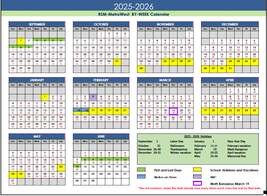 Note: school calendar may be updated due to unforeseen events such as weather cancellations.